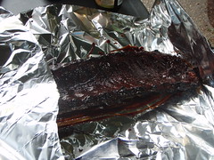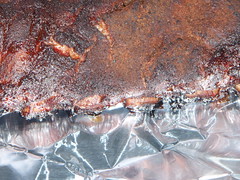 3. BBQ sauce. Use heavy-duty Aluminum foil, apply BBQ sauce to all side of the ribs, seal in the foil and cook for 1 last hour.