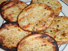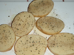 Coat them in some oil oil and rub your favorite potato spices on them. I use Garlic salt, Pepper and Parsley. Cooked them for about 15 minutes on each side! Bet you can't eat just one………..