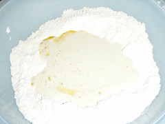 Add starter, melted butter, warm milk, salt, sugar. Mix until blended well. Add flour, 1 cup at a time and mix until it forms a ball.