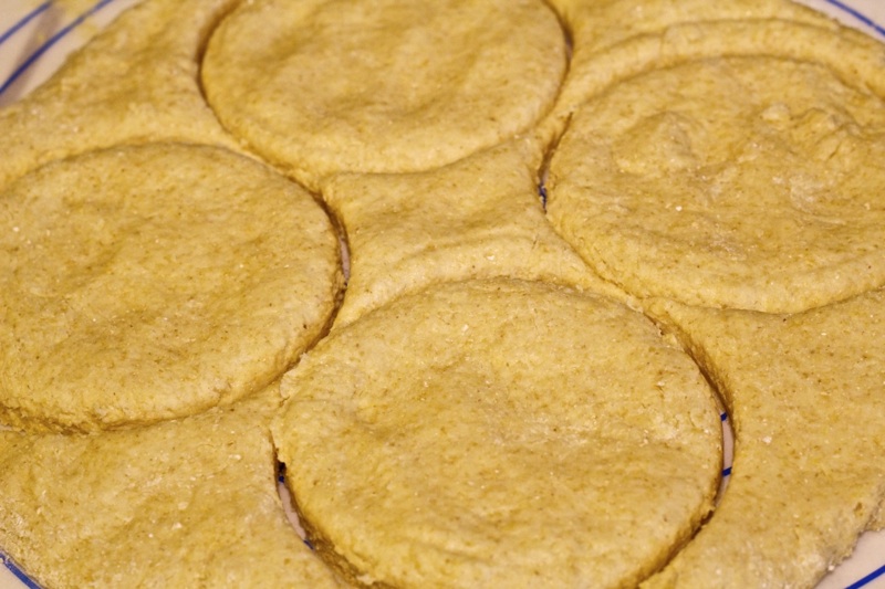 After mixing the Bob's Red Mill Buttermilk Biscuit dough per their instructions, I rolled the dough out to cut my biscuits, about a 3 inch circle.