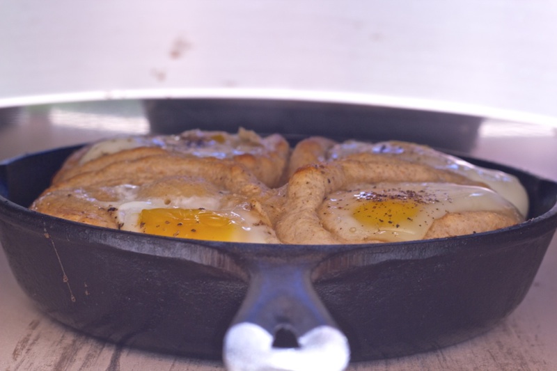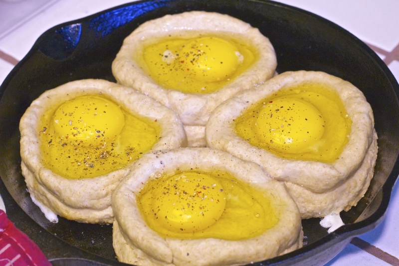 Cast iron Skillet Biscuit and Egg Boats Recipe