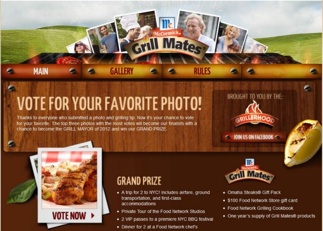 McCormick Grill Mates Grillerhood contest is not over yet! The final voting is going on right now and you need to vote on your favorite “Grill Mayor 2012” photo submission.You have until 9:00 a.m. ET on August 20, 2012 to vote on hundreds of grilling photo submissions.