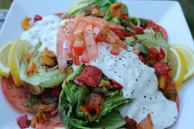 Fresh homemade Blue Cheese salad dressing from as little as 8 ingredients to top off a grilled Romaine salad, smokey, robust and refreshing on a hot summer afternoon.