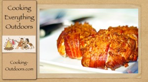This delicious Super Bowl recipe will have your guests praising your culinary skills! Chicken Cordon Bleu wrapped in bacon, fried onions and smoked to perfection.