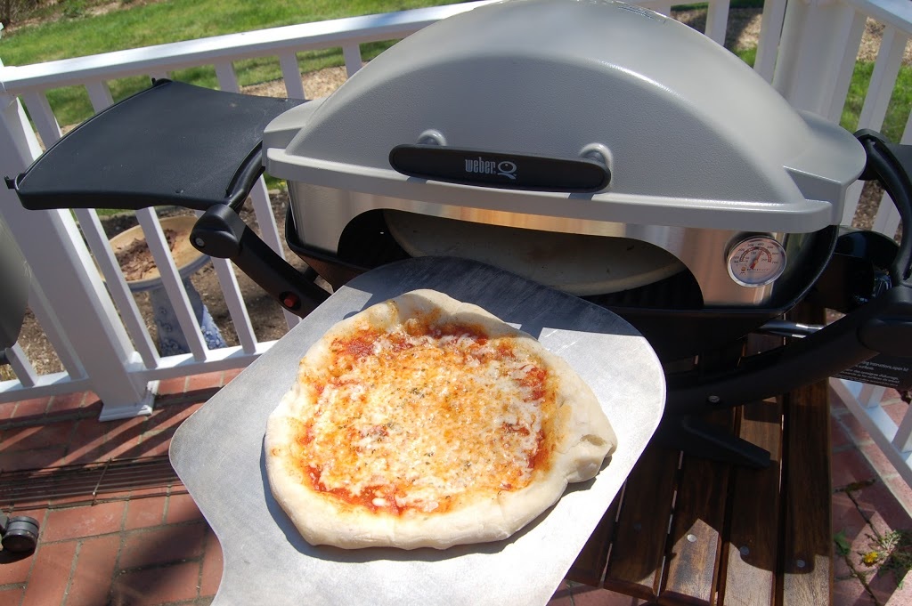 My friends over at Kettle Pizza introduced a new insert for the Weber Q 200 and 220 series gas grill users. The Kettle Pizza metal sleeve fits between the grill bottom and top creating a pizza oven chamber that retains the heat. A 15 inch cordierite stone and wood peel complete the kit.