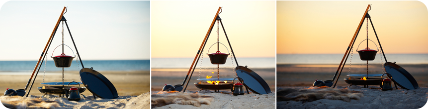A multipurpose tri-pod cooking unit from Bon-fire, it is a Danish design and well thought through, just being introduced to the USA.