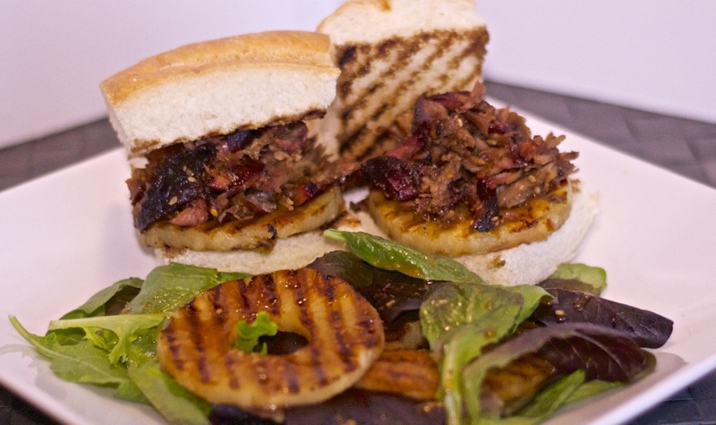 - Layers bun, pineapple ring, Teriyaki BBQ Pulled Pork then bun and serve!