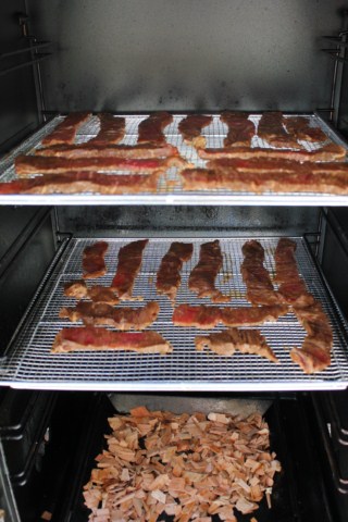 I like to add smoking chips to my jerky recipe for the first hour, adds great flavor and coloring (dark mahogany). Fruit woods are a good choice but stronger woods such as hickory and mesquite can be used also, just limit the exposure time so you do not overwhelm the flavor of the jerky your making.