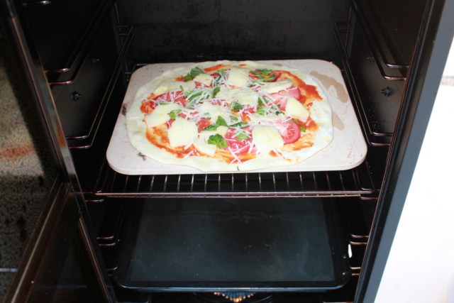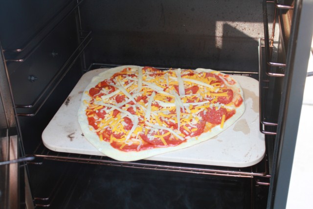 When the Smoke Vault was heated properly I placed my first test pizza on the stone.
