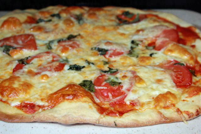 Margarita pizza cooked in the Camp Chef 18″ Smoke Vault.