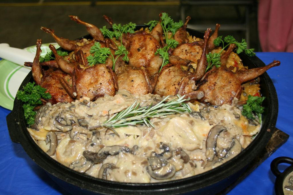 - Stuffed Quail with Venison Raviloli and Wild Mushroom sauce