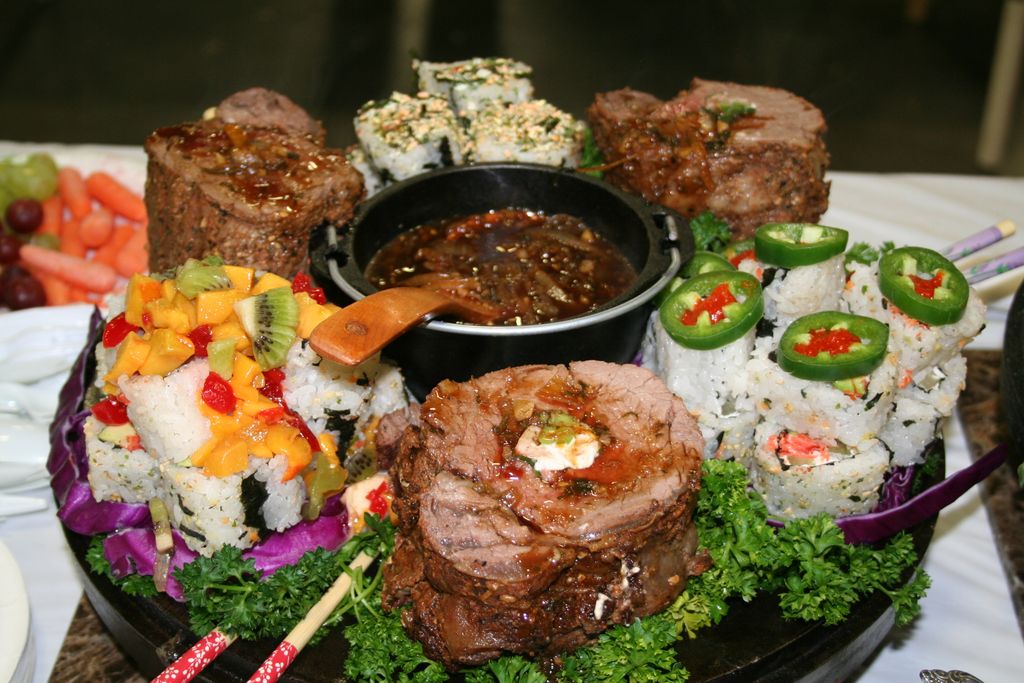 - East meets West Stuffed Beef Tenderloin and Sushi