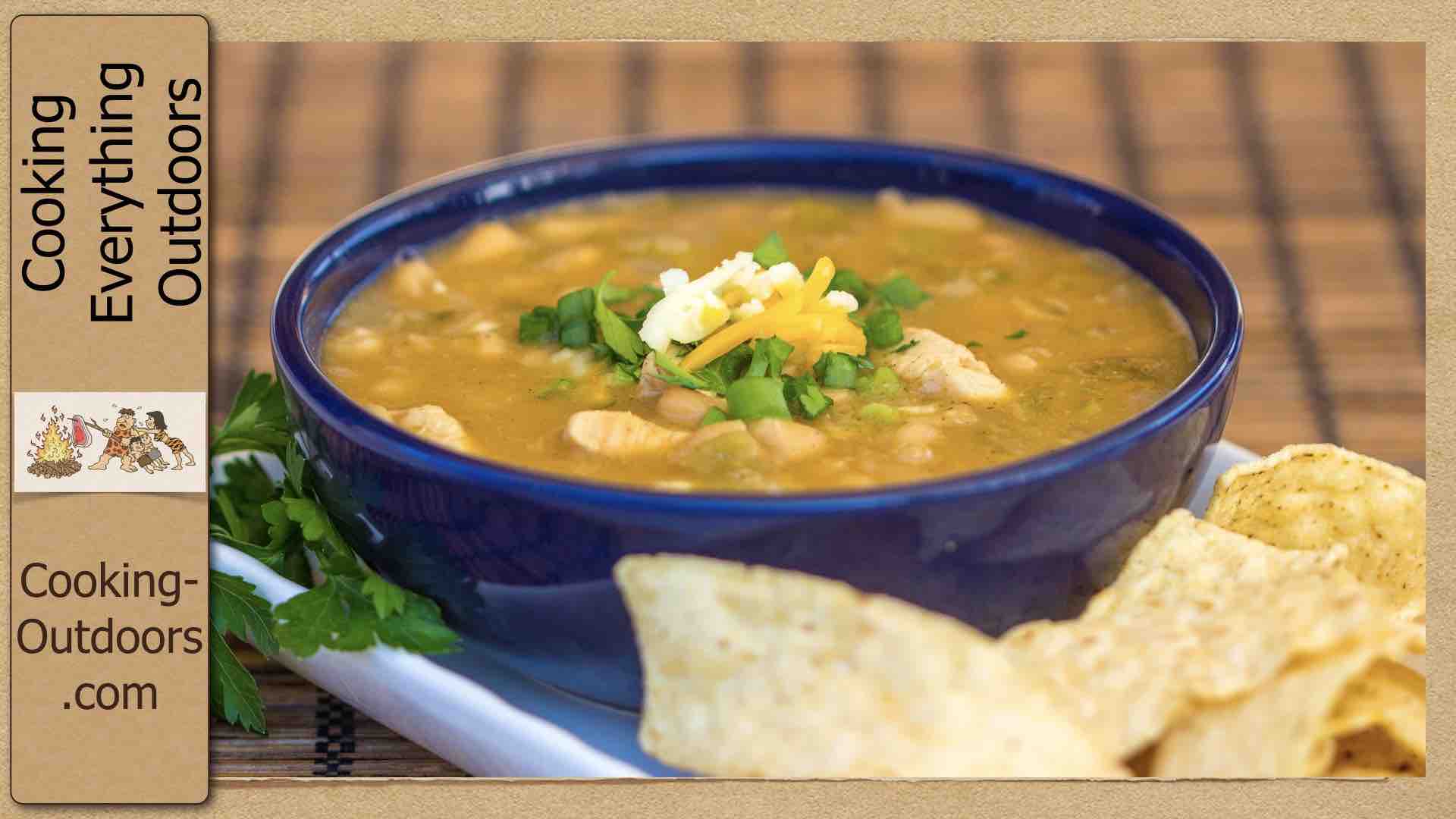 I used two techniques for thickening the White Chicken Chili Recipe. First was a flour rue using just a tablespoon of flour and second was mashing a half can of beans to add at the end of the cook if necessary. White Chili is typically soupish inconsistency and is often thickened with heavy cream or sour cream, not the easiest to have on hand if you are camping.