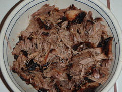 After 4 hours the Pork should be falling apart. Remove Pork and set aside.