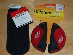 I also received some neoprene handle holders, you know, when you grab your cast-iron pan and you don’t have something to protect the handles with you tend to have the handle imprinted on your hand – that is a very serious burn.