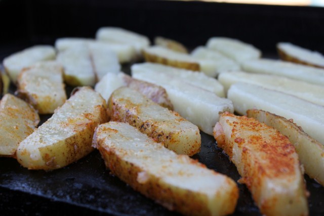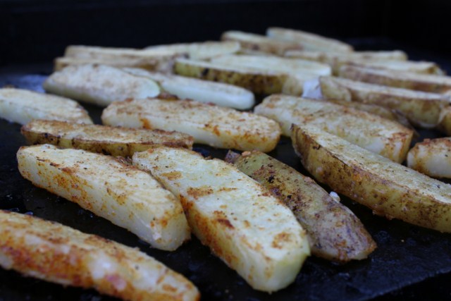 Ideally, you will need a griddle, skillet or a stone to grill your French fries. I used my Island Grillstone this time around with very good results, the secret being “pre-heat” for at least 15 minutes at 450° F not matter what you choose to use in your grill.