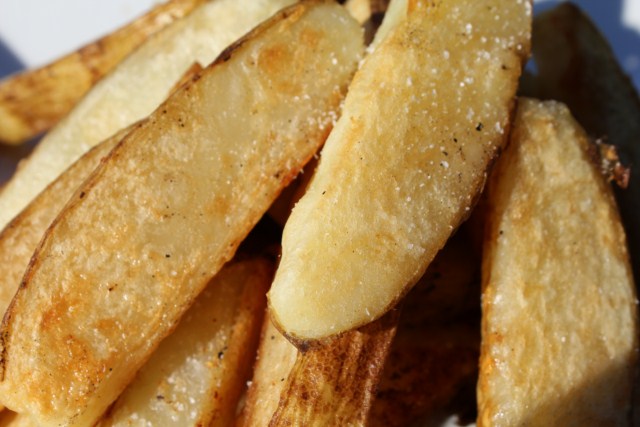 Frites, patates frites or pommes frites in French, French fries in McDonaldish or “More please” in my house if they are grilled in the barbecue. Many of you may know them as “Steak Fries”, deep fried till crispy then salted to taste, perhaps a big glob of ketchup next to it.