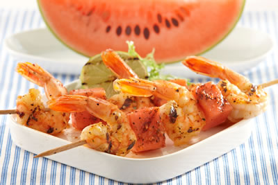 - 1 pound salmon fillets or large shrimp, peeled, deveined and threaded onto skewers